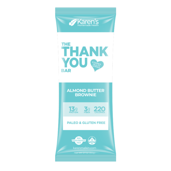 The Thank You Bar was personally formulated by Karen Malkin, Integrative health, nutrition, and eating psychology counselor, because she wanted to offer her clients a superior-quality energy bar that is perfect for any day. She went about creating the tastiest bar possible exclusively for them, but is now offering The Thank You Bar directly to you.